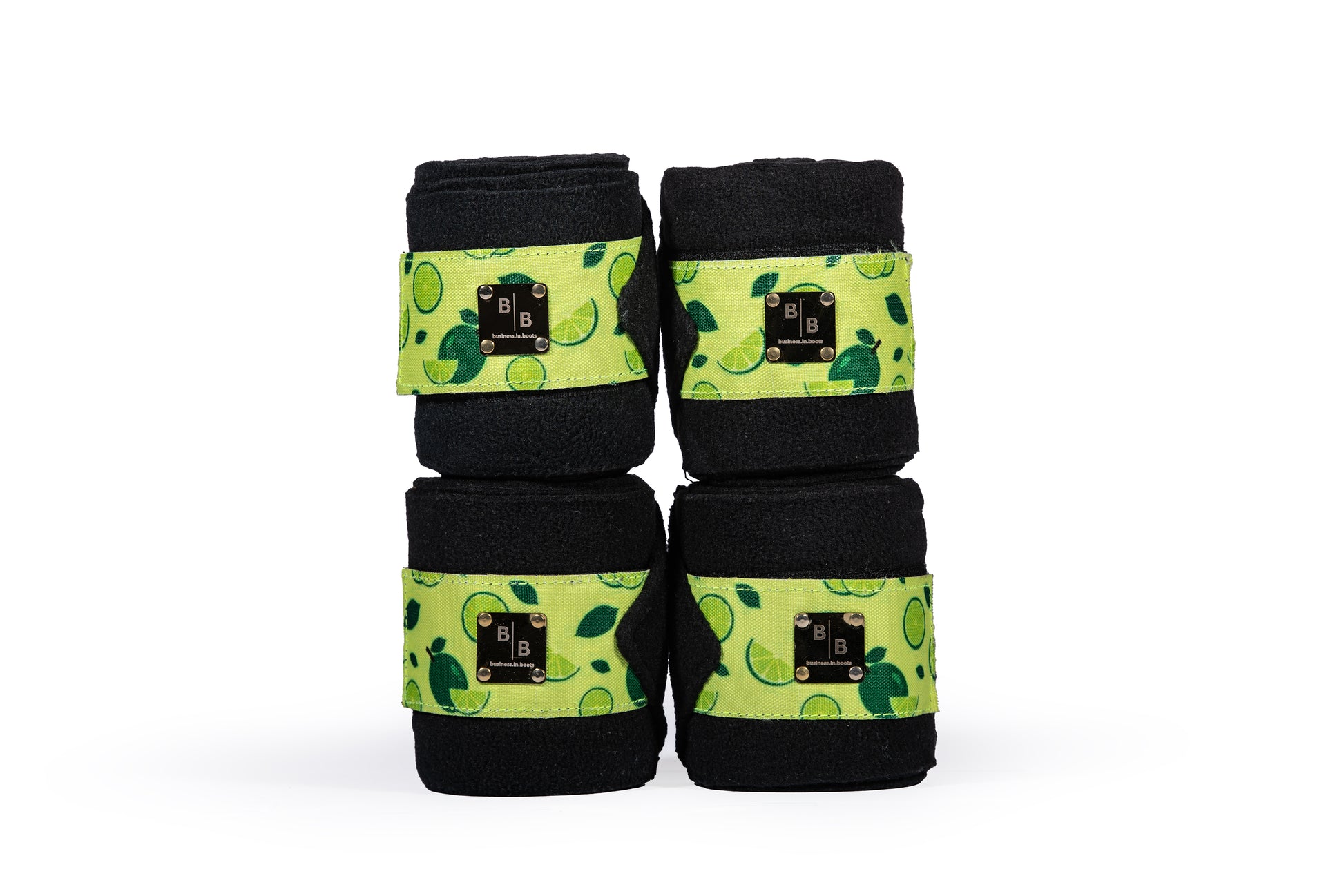 Unser Sommer/Limes Trainings-Set kombiniert Schutz und frisches Design. Stell dir dein perfektes Duo aus Hufglocken und Bandagen im Limes-Look individuell zusammen.